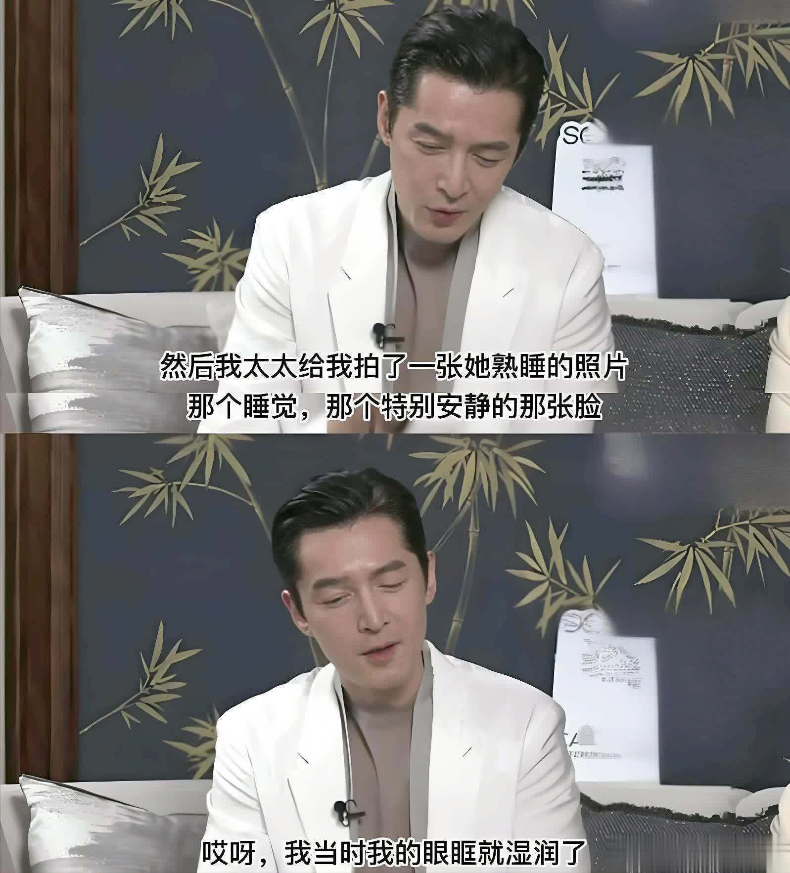 他曾提到,自己在外拍戏时,妻子给他拍了女儿熟睡的照片,当时自己的眼眶就湿润了。