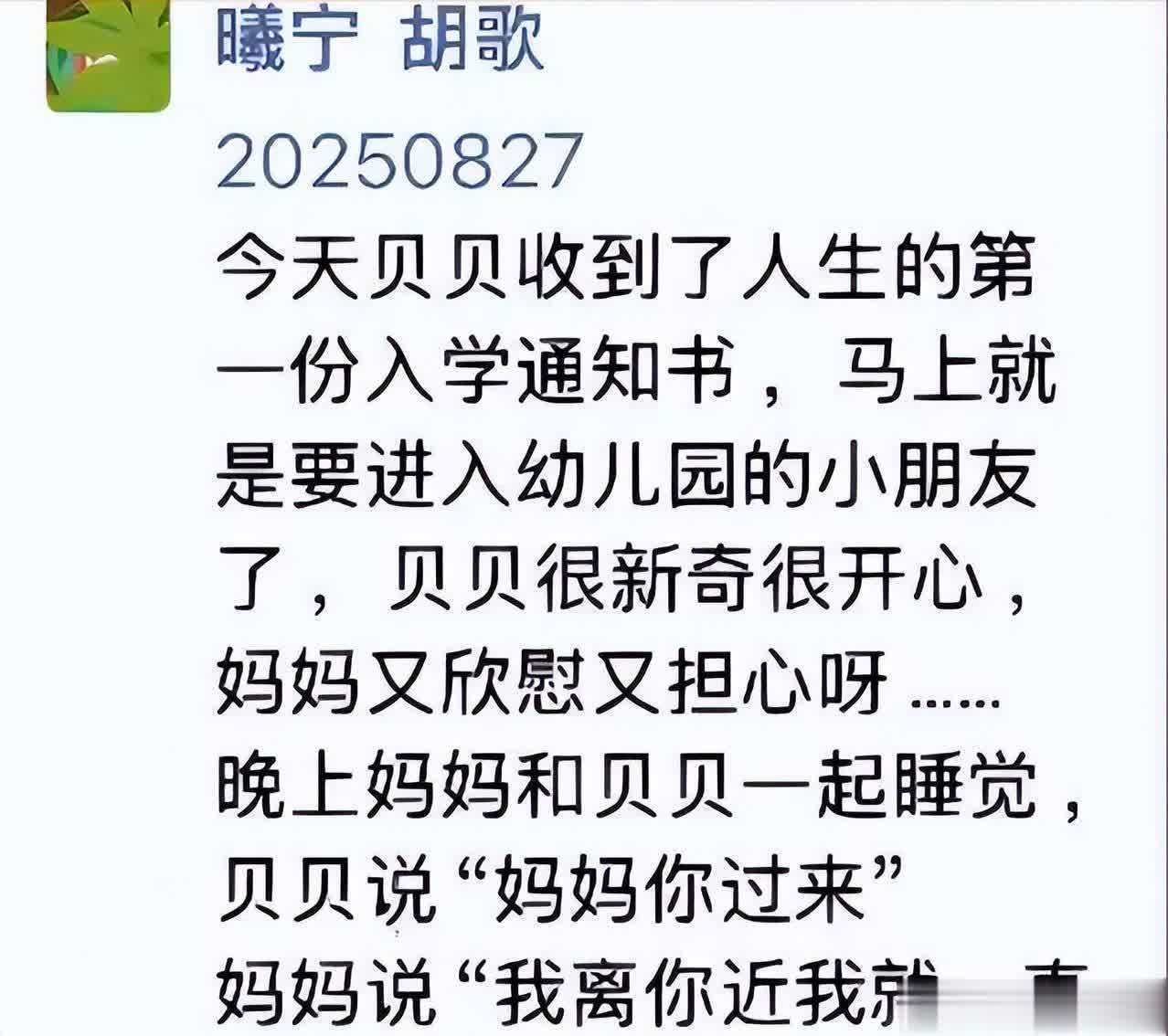 到了8月,网上流出一张疑似黄曦宁的朋友圈,内容提到“弟弟见爷爷没哭”,还有女儿贝贝即将上幼儿园的事。