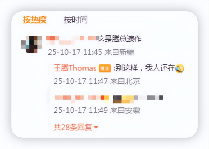 谁也没想到,离职高管还会帮老东家的新机站台,但细想其实也不意外。王腾在小米待了九年,之前 Redmi K40那种卖爆的机型就是他主导的,K90系列更是他走之前一直盯着的项目,说有感情那是真有感情。网友在评论里开玩笑说 “这不会是腾总的遗作吧”,他立马回了句 “别这样,我人还在呢”,既逗又透着对以前工作的在意。